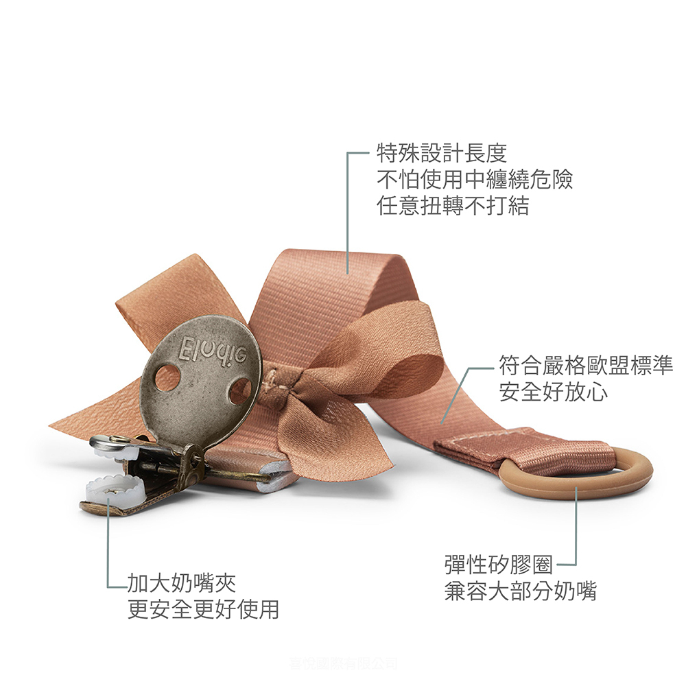 特殊設計奶嘴夾長度 不怕使用中會纏繞造成危險, 且可任意角度翻轉使用不打結