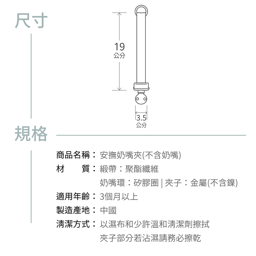 小寶貝在活動時 奶嘴夾可以有效的防止安撫奶嘴遺失或掉落造成髒汙