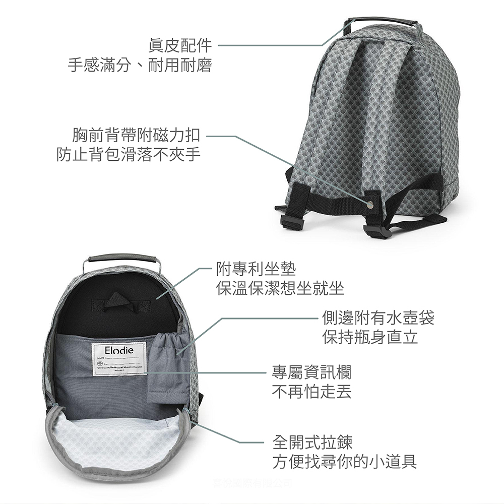 小童背著裝滿自己挑選的玩具, 零食開心的與家人出門去公園野餐
