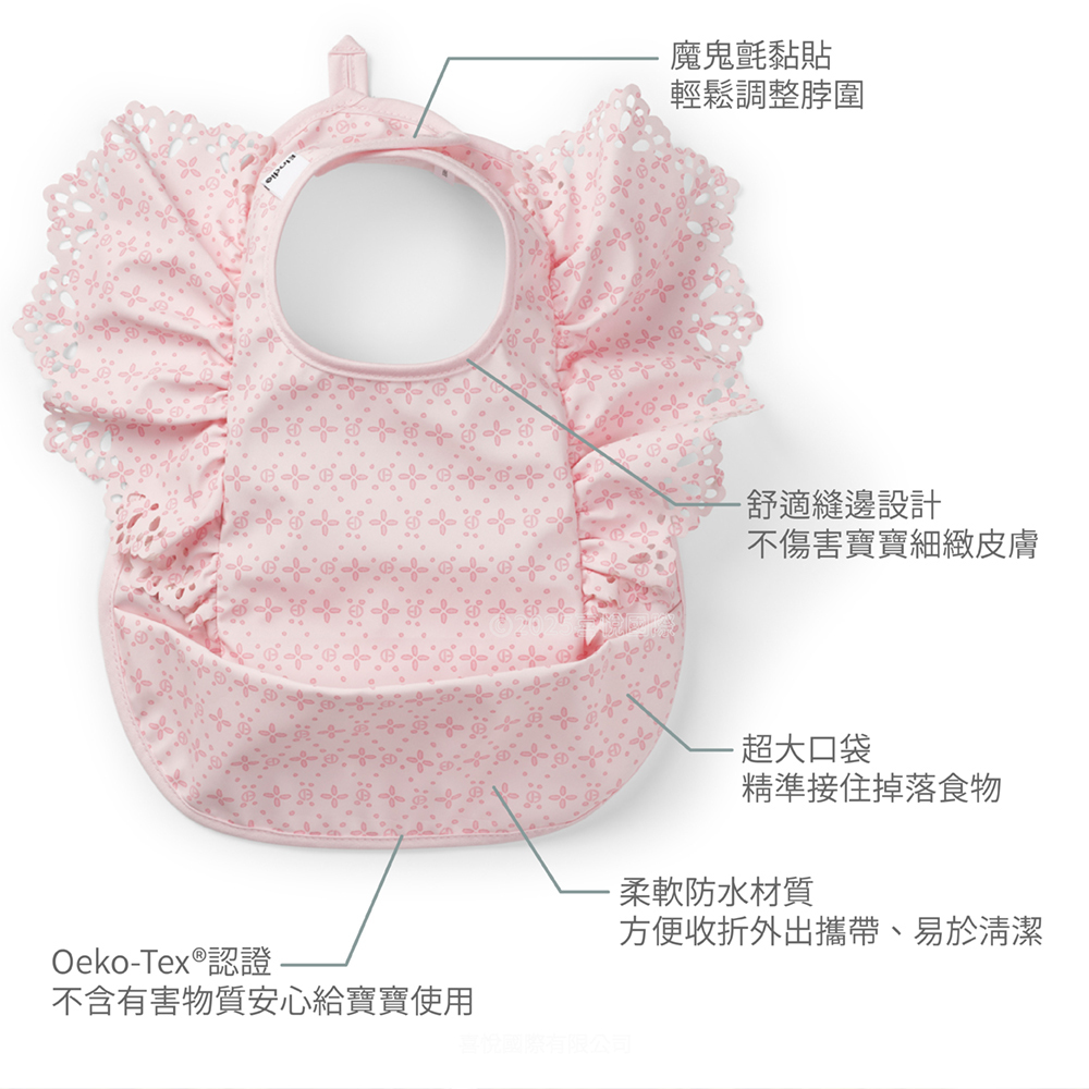 防水口袋圍兜-Embroidery Anglaise Pink 英倫情人