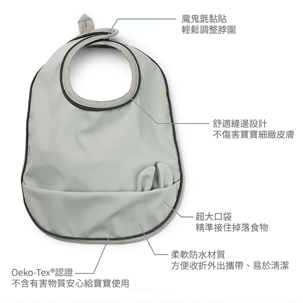 防水口袋圍兜-Mineral Green 長耳兔(莫蘭迪綠)